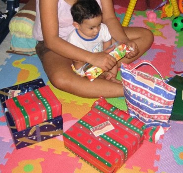 Our son’s first time to exchange gift.